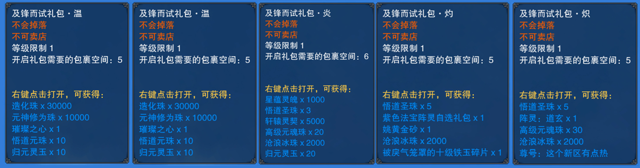 开服24周内,仙友们仅需达到活动要求的9个等级,即可领取一份对应礼包,这些礼包内不仅有昭武碎片、金卡阵灵,还有大量心法、四灵、元神、阵灵、星宿等玩法的养成材料、道具免费赠送给来到新服体验的仙友,助力你们的诛仙之路!