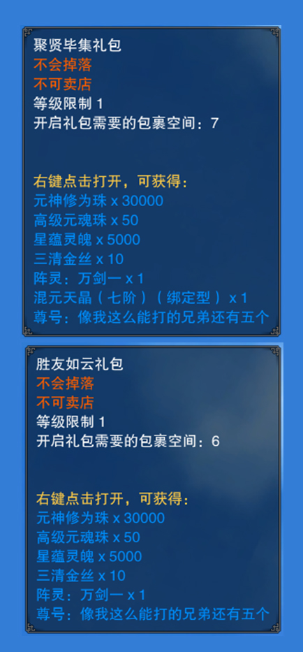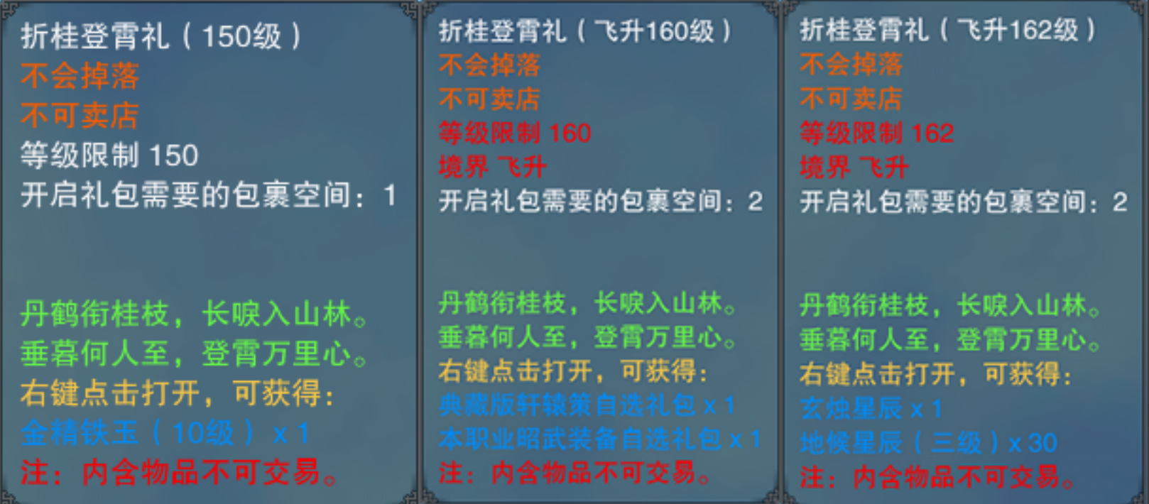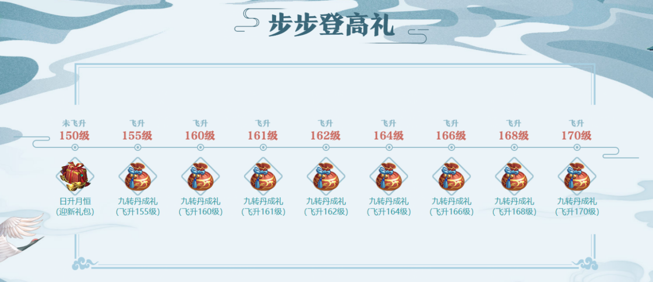 2)在活动时间内,等级达到未飞升150级的角色,即可在pgp平台领取【日升月恒礼包】,(每个角色限领一个)