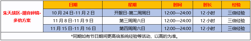 1)活动时间为开服日-开服第24周的周日23:59,开服当周算首周。