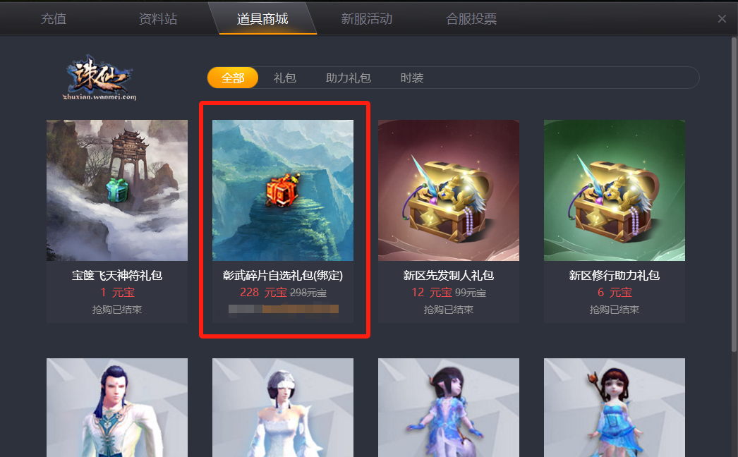 新服开启的30天,五蕴阁(web商城)将会限时上架【彰武碎片自选礼包】,每个角色限购20个。各位仙友可进入五蕴阁(web商城)选择助力礼包标签进行购买。