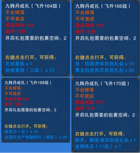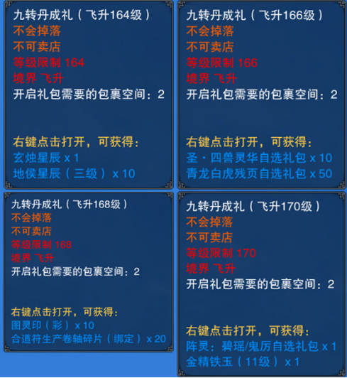 每组新服在开服24周内,仙友升级到未飞升150级、飞升160级、飞升162级、飞升164级、飞升166级、飞升168级、飞升170级这7个对应等级可以抢占对应礼包奖励(礼包数量基于每个职业进行限制,先领先得。)