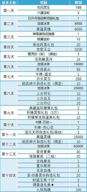 4)活动期间,各位仙友只需要登录14天,即可获得所有奖励。