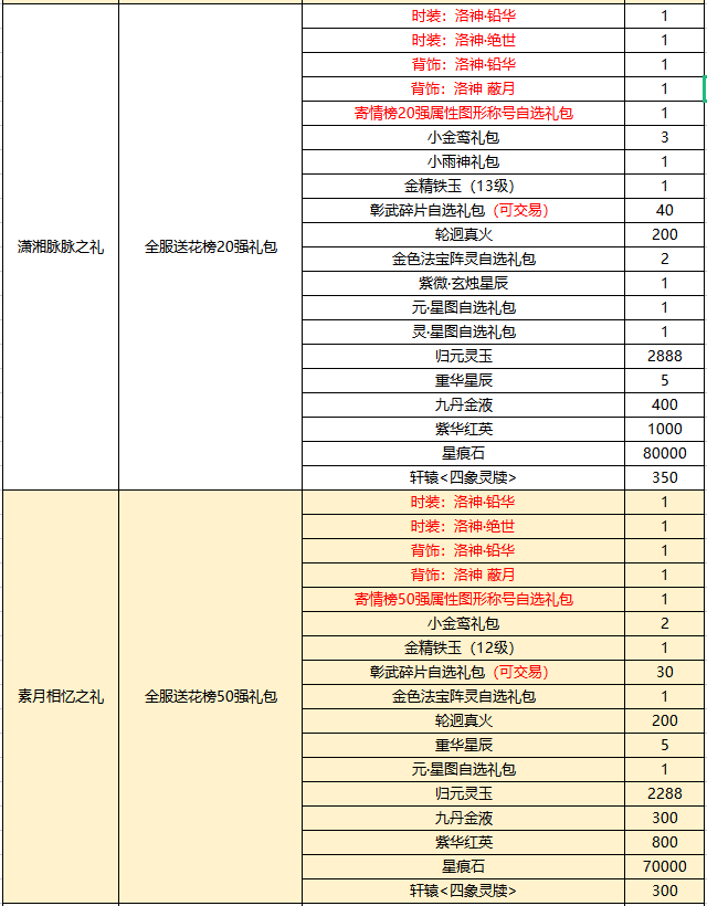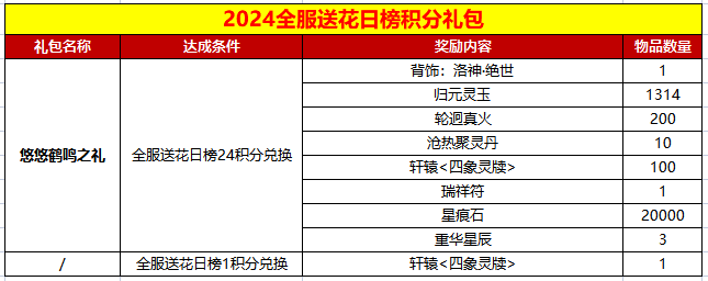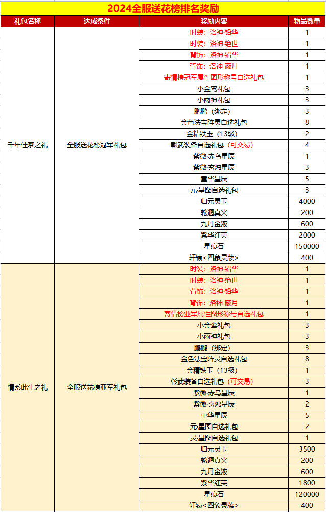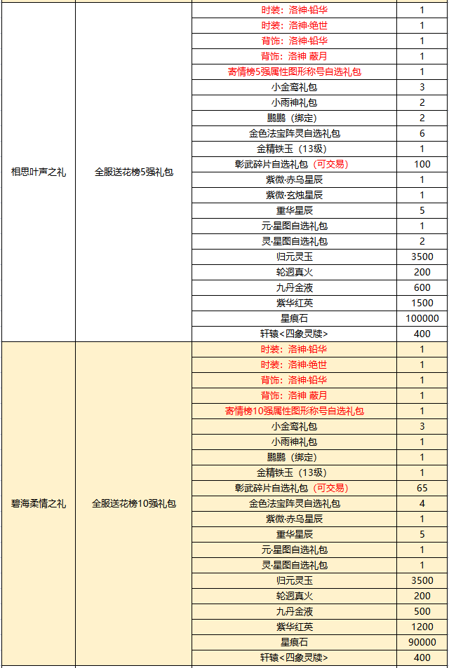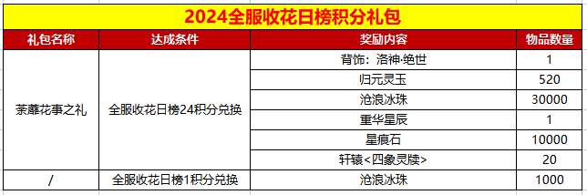 包含全服送花榜礼包、全服收花榜礼包、全服日榜积分礼包