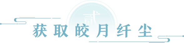 七夕当日,神女的眼泪幻化“珍珠”,撒满云梦间。采集“珍珠”,拔了参爷爷的胡子,待它变幻为美丽的丝线,再将珍珠和丝线带给碧瑶,制成项链,赠给有缘人。有缘人若能因此感动落泪,便可得到“梦引·皎月纤尘”,拥有道具“梦引·皎月纤尘”的侠士,可在通关T10以上的副本后,于对应通关领奖npc处兑换99个“皎月纤尘”