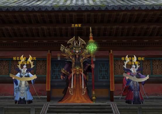 获得选拔赛资格的帮派战队成员可在河阳-飞仙观的选拔赛报名使者 晓虹<红方>和选拔赛报名使者 晓岚<蓝方>报名使者处报名进入战场。只有满足对阵表的战队才可报名。