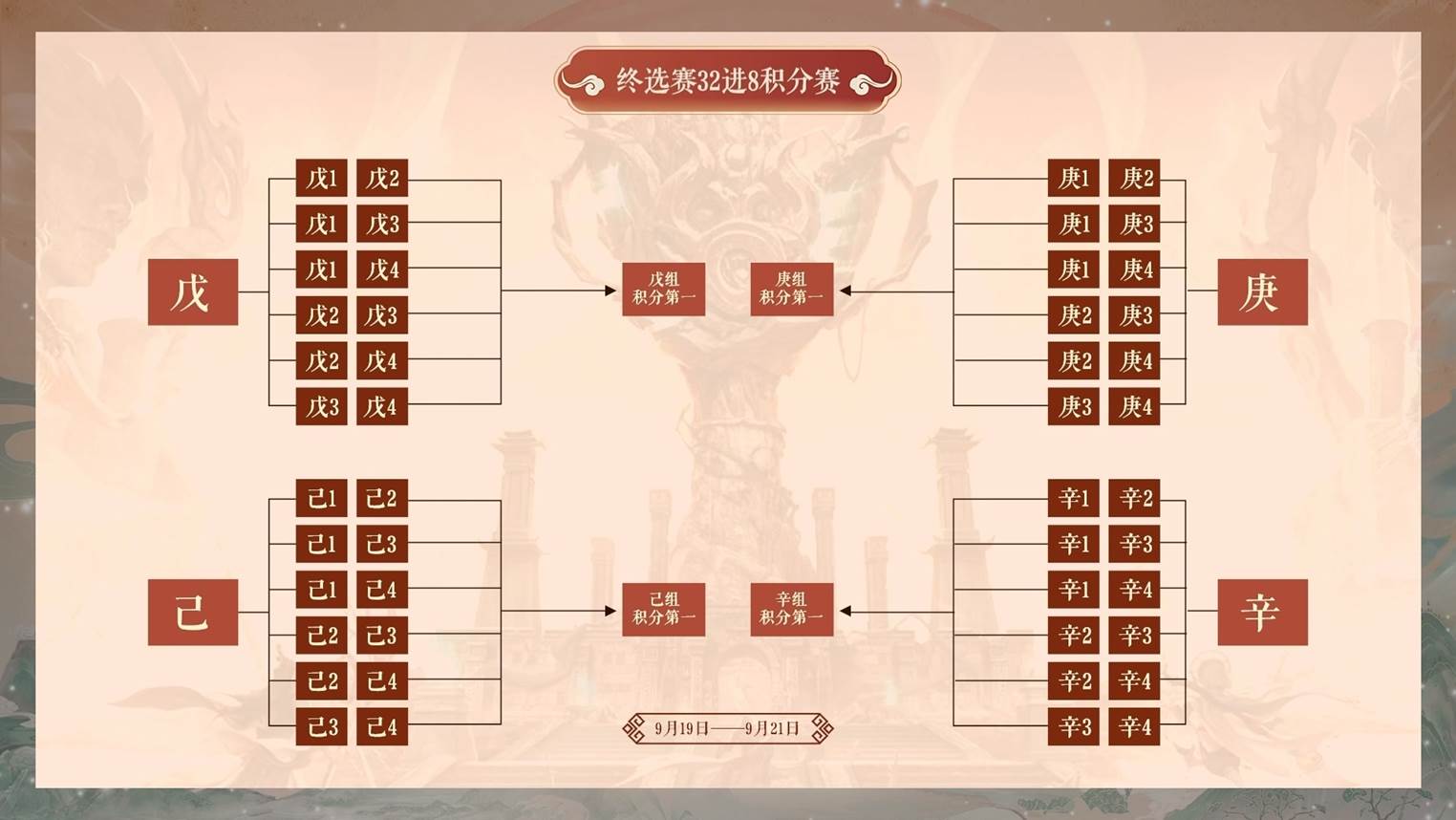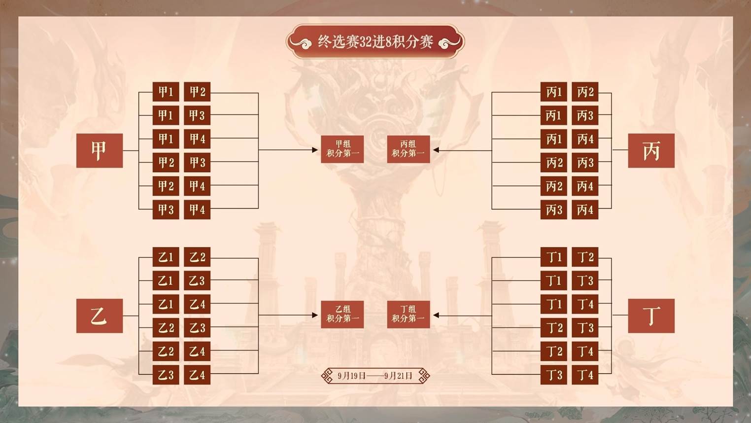 终选赛32进8积分赛比赛时间:9月19日--9月21日