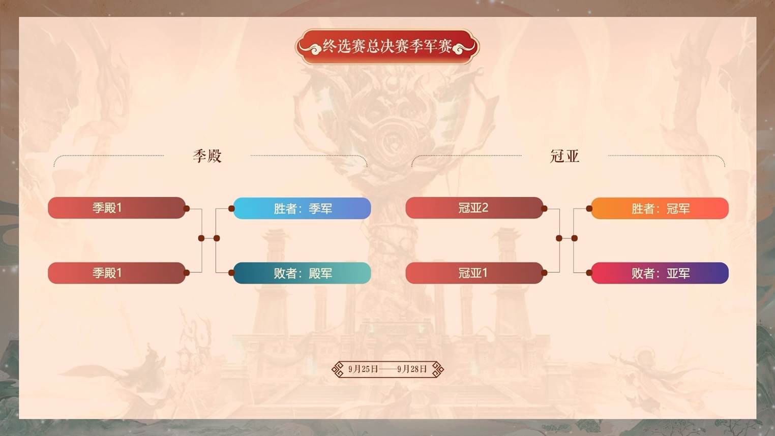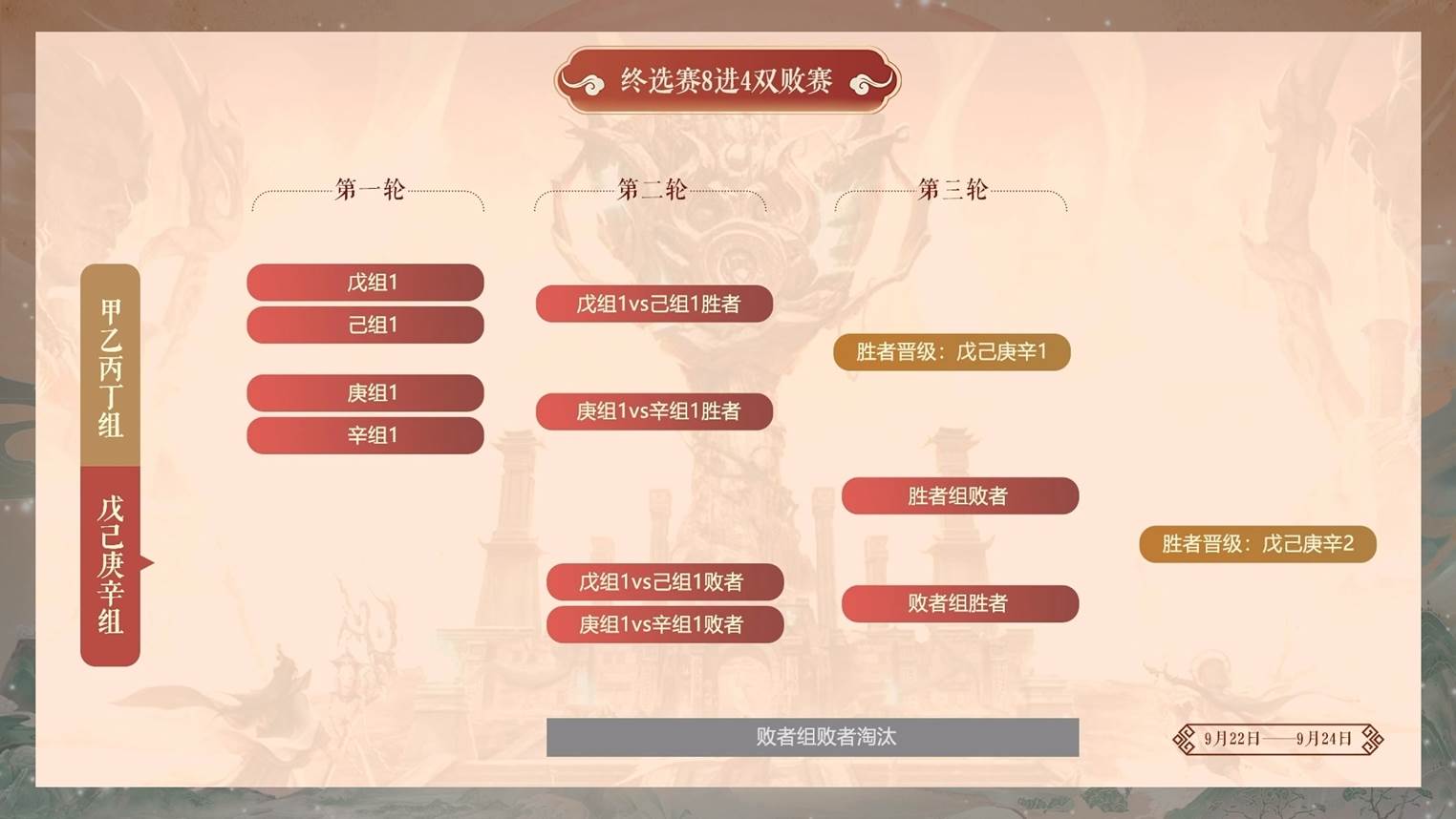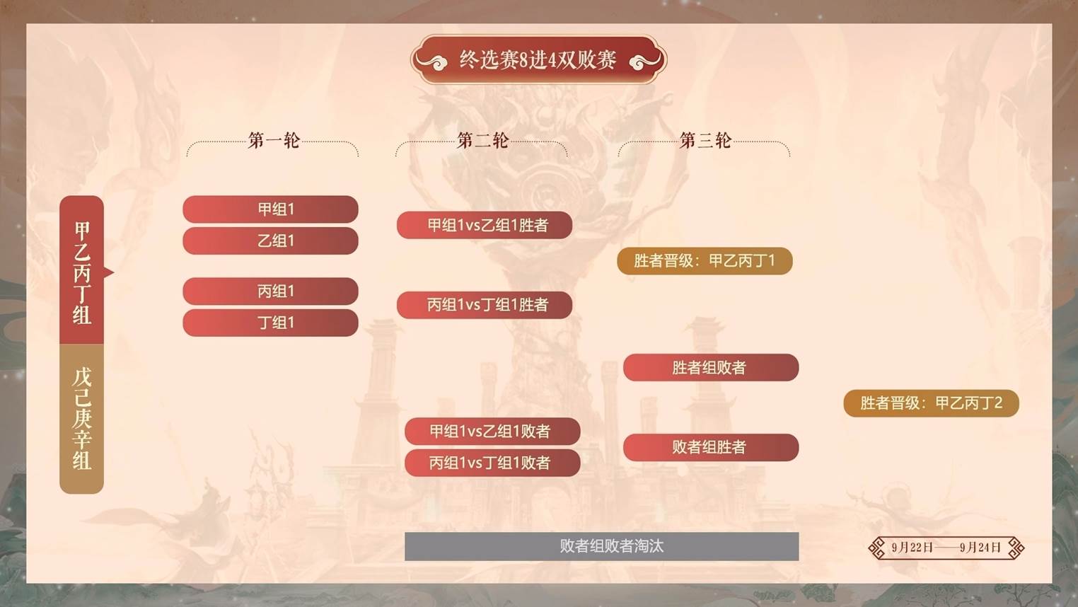 终选赛8进4双败赛时间:9月22日-9月24日