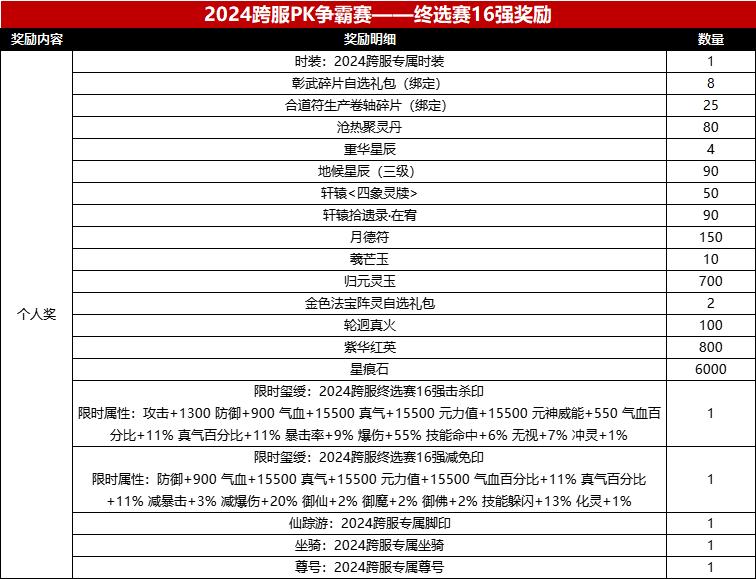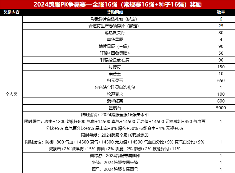 7. 全服16强(常规赛16强+种子16强)奖励