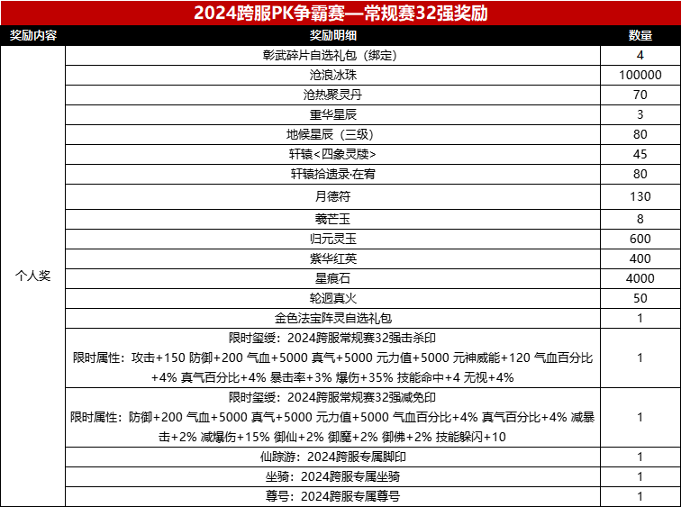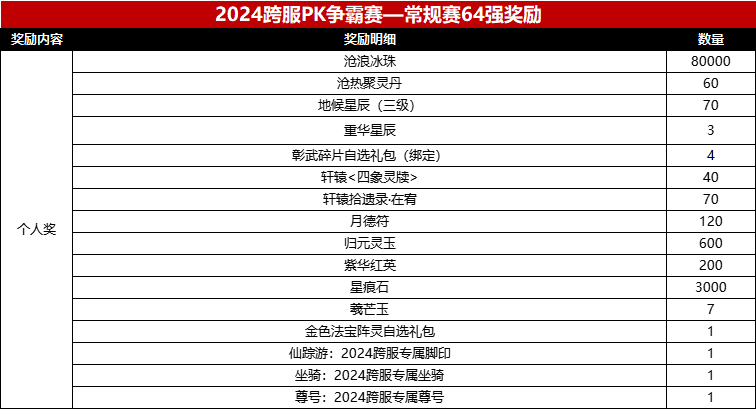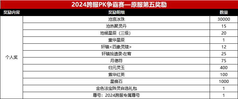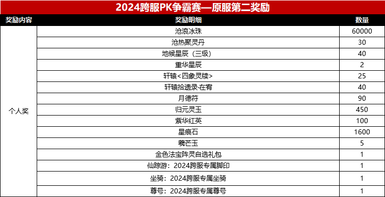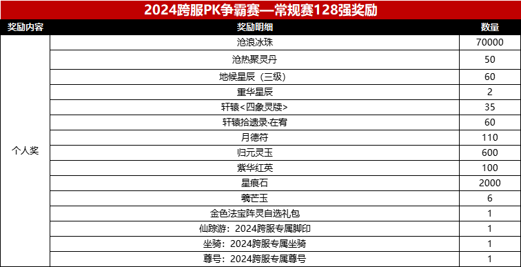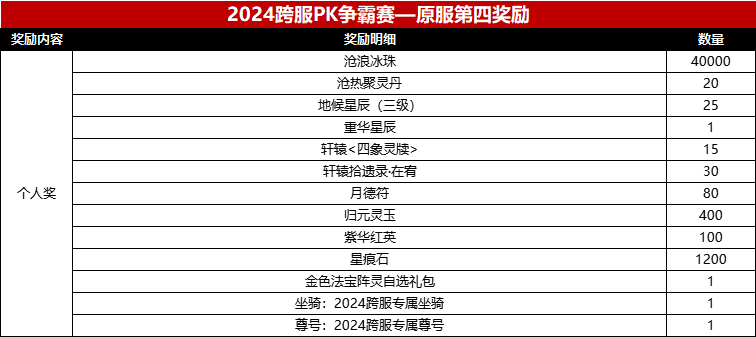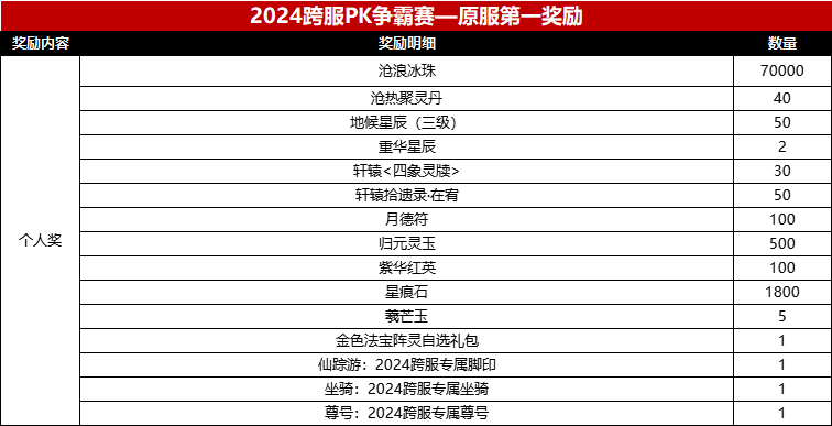 在2024年度跨服pk赛中,我们为参赛选手们准备的奖励计划如下: